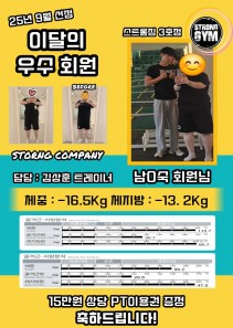 25년 9월 스트롱짐 3호점 이달의 우수회원